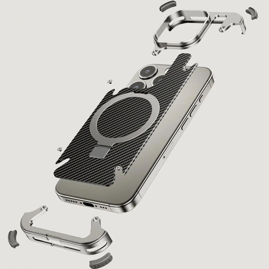 Protégez votre iPhone avec ce cache en métal robuste au design en fibre de carbone, alliant élégance et résistance. Compatible MagSafe, il permet un chargement sans fil efficace sans enlever la coque. Doté d'un contour métallique pour une protection intégrale, ce cache assure une défense optimale contre les chocs et rayures. Idéal pour les utilisateurs cherchant un look premium et une protection à toute épreuve.