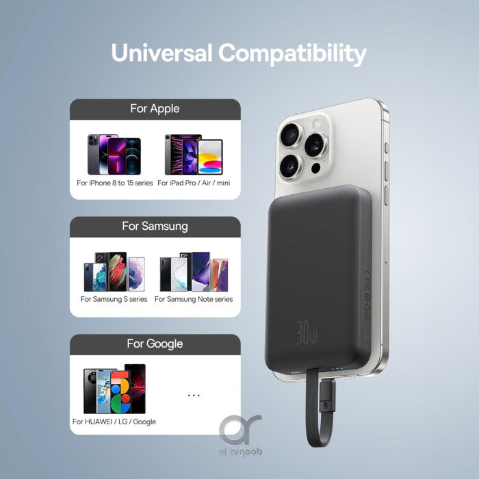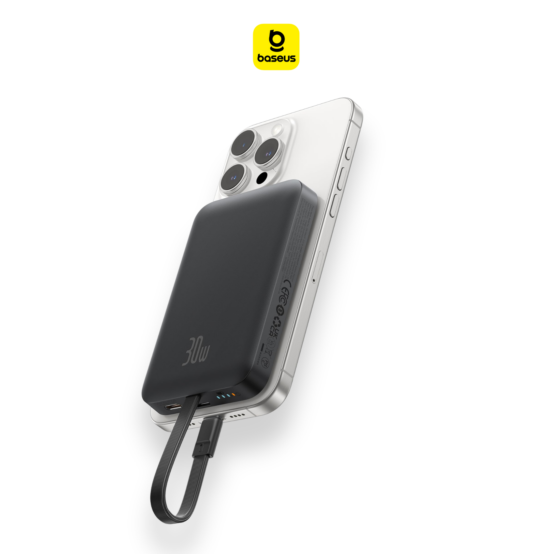 Cette batterie externe magnétique Baseus de 10000mAh est votre alliée pour rester connecté en toutes circonstances. Compatible avec une large gamme de smartphones, dont iPhone, Samsung et autres appareils Android, elle offre une puissance de charge rapide de 30W. Grâce à sa fonction magnétique, elle se fixe facilement à l'arrière de votre téléphone pour une recharge sans fil simple et pratique, tout en vous permettant également de l’utiliser via le câble USB-C intégré.