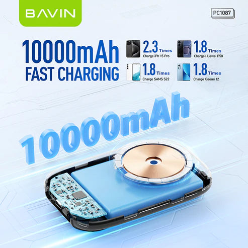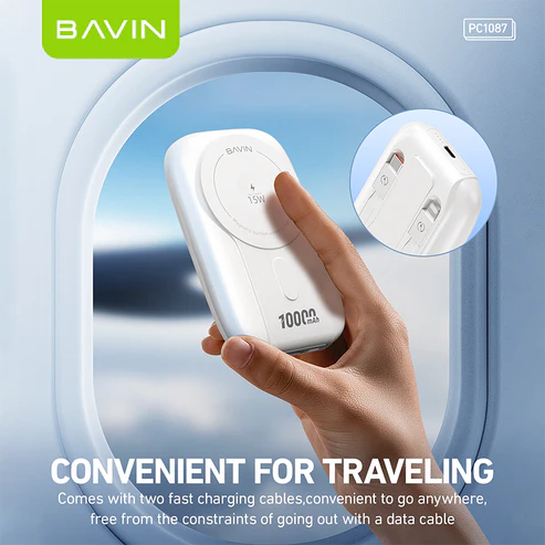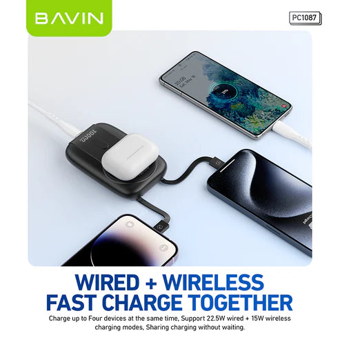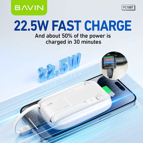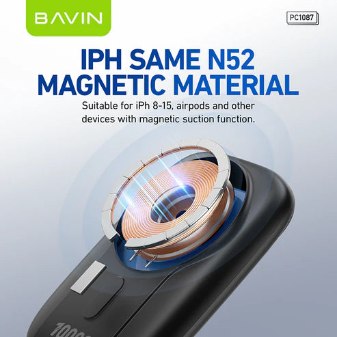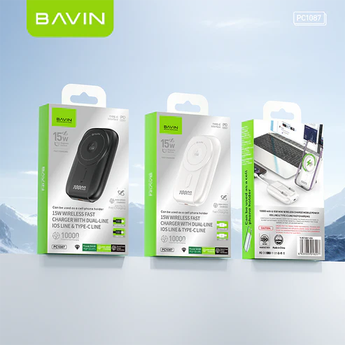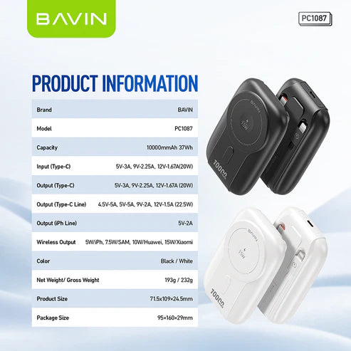 BAVIN Power Bank MagSafe 22.5W 10000mAh avec Câbles Type-C + Lightning