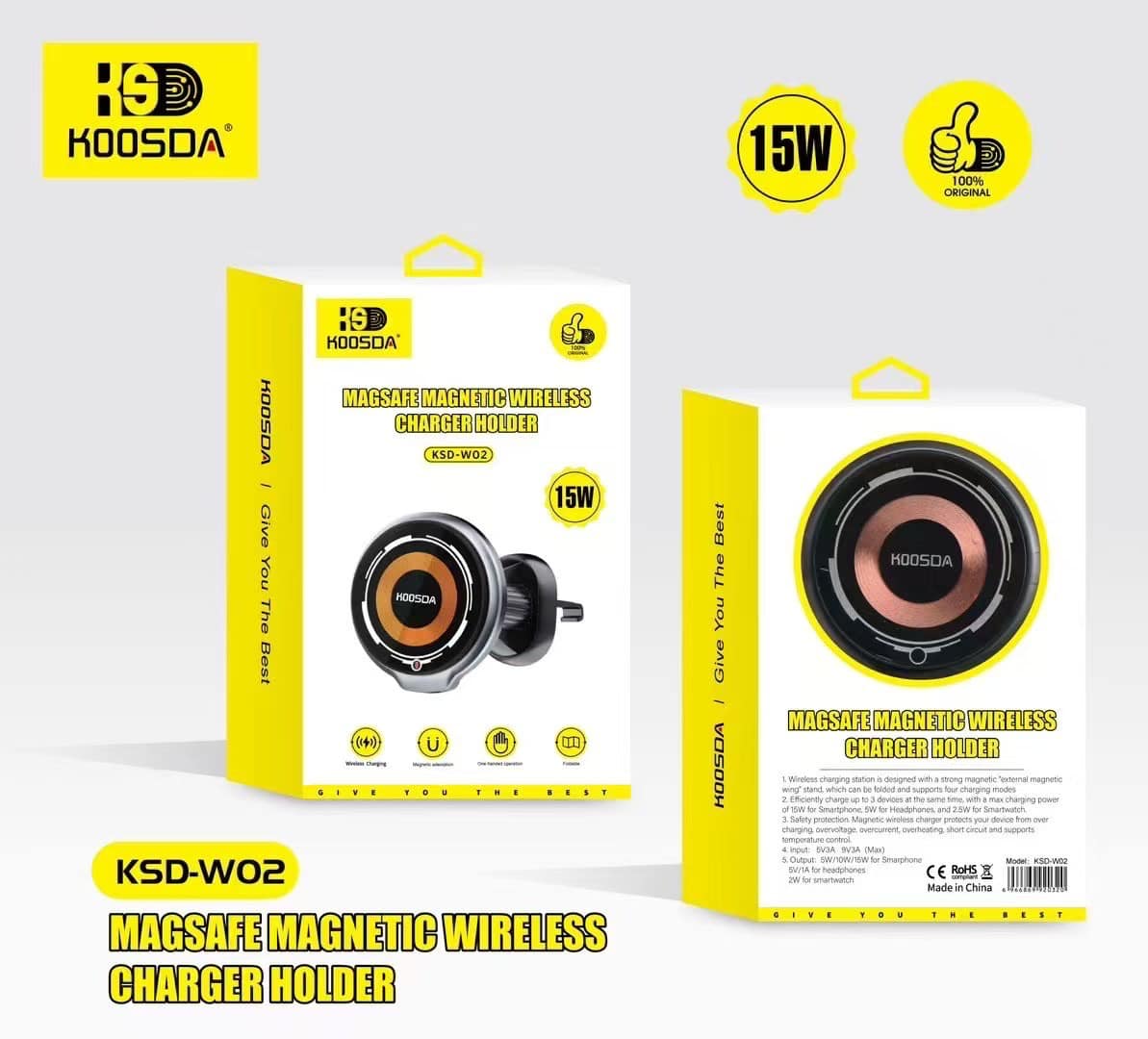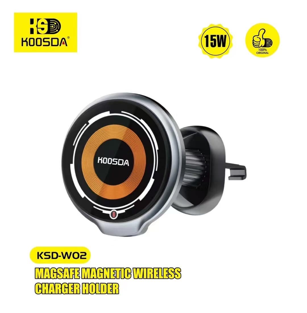 Le support Koosda KSD-W02 combine un maintien magnétique ultra-fort avec une recharge sans fil rapide 15W. Idéal pour les iPhones compatibles MagSafe ou tout smartphone avec aimant, il se clipse facilement sur les grilles d’aération de votre voiture et garde votre appareil bien en vue. Un design futuriste avec halo lumineux, une stabilité parfaite même sur routes cabossées, et une recharge rapide pour ne jamais manquer de batterie.