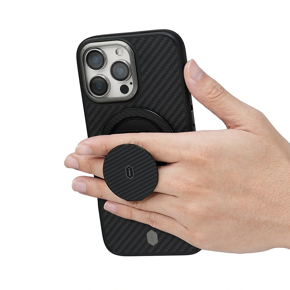 Le WiWU Aramid Fiber Magnetic Ring Holder est un support magnétique premium conçu pour offrir une prise sûre, un confort d’utilisation optimal et un design haut de gamme. Fabriqué en fibre d’aramide (Kevlar) et en alliage d’aluminium, il combine légèreté, résistance et élégance.
