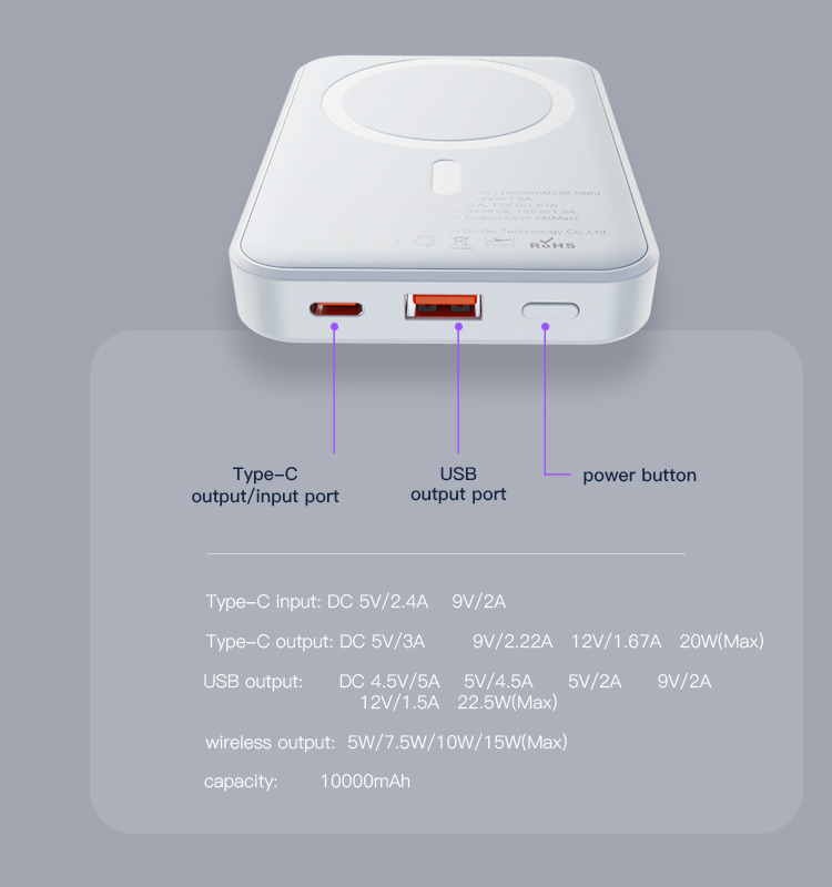 YESIDO YP45 – Power Bank Batterie MagSafe 22.5W 10000mAh