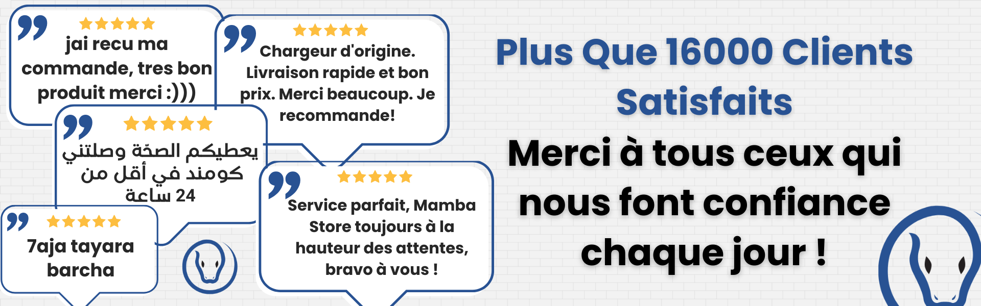Notre service client est à votre disposition 7 jours sur 7 pour répondre à toutes vos questions et résoudre vos problèmes. Vous pouvez nous contacter par e-mail à mambastoretn@gmail.com ou par téléphone au +216 23 233 115. Vous pouvez également utiliser notre formulaire de contact sur le site.